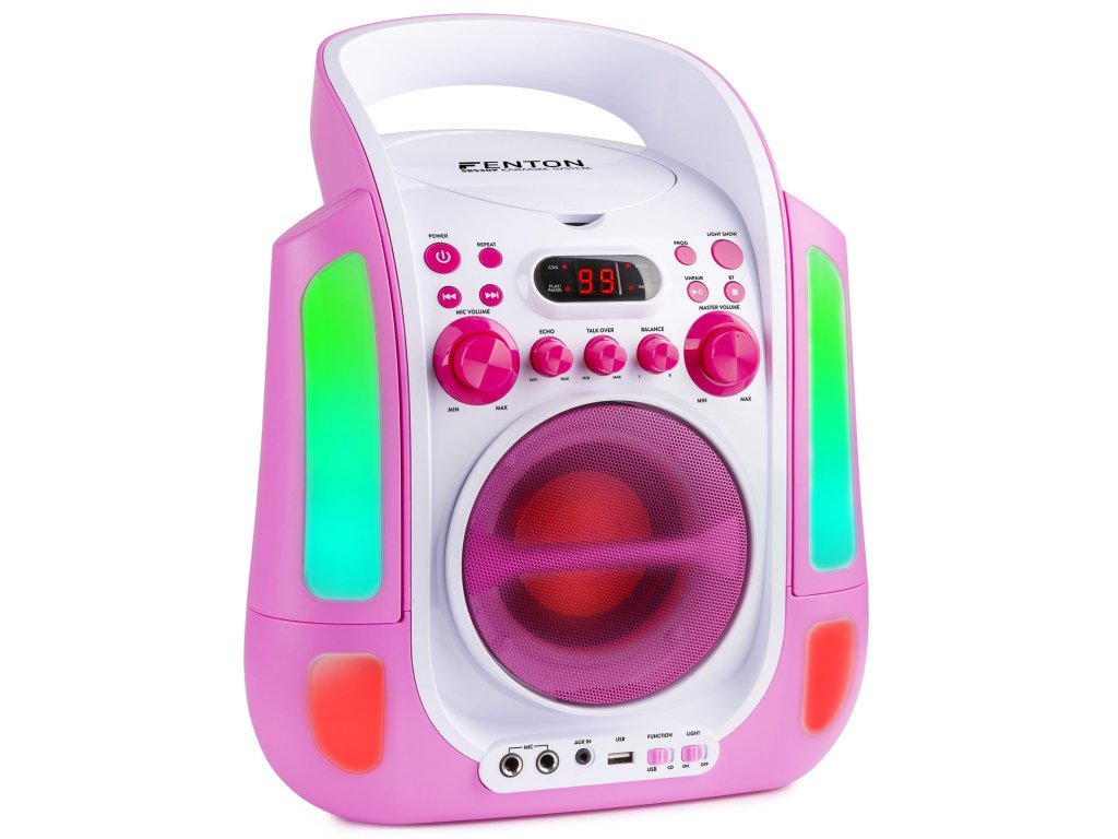 S Fenton SBS30 si užijete toľko zábavy! S dvoma mikrofónmi vy a váš brat, sestra, priateľ alebo priateľka budú spievať rovnako ako hviezdy. S funkciou CD-G vidíte texty v televízii a spievate k nim. Ak ste začiatočník, funkcia echo vám pomôže rozozvučať zvuk ako profesionál. Pre úplnú kontrolu naprogramujte skladby v poradí, ktoré si prajete. Svetelné efekty sa menia s hudbou, ktorá dodáva vašej show ten konečný nádych.
