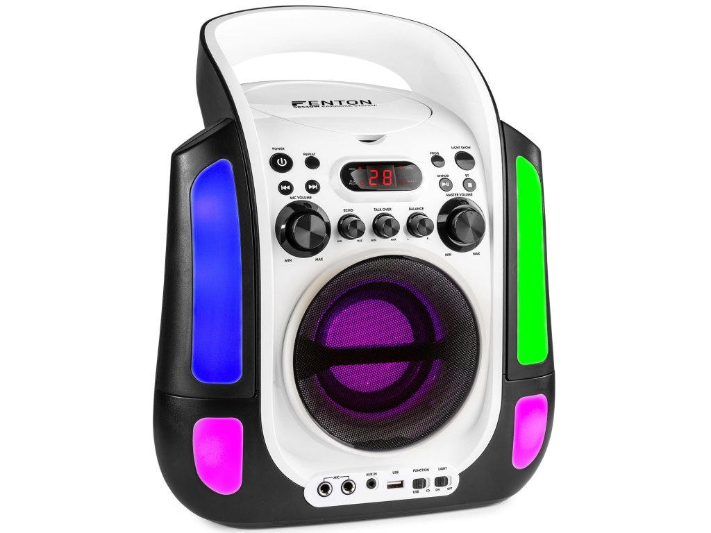 S Fenton SBS30 si užijete toľko zábavy! S dvoma mikrofónmi vy a váš brat, sestra, priateľ alebo priateľka budú spievať rovnako ako hviezdy. S funkciou CD-G vidíte texty v televízii a spievate k nim. Ak ste začiatočník, funkcia echo vám pomôže rozozvučať zvuk ako profesionál. Pre úplnú kontrolu naprogramujte skladby v poradí, ktoré si prajete. Svetelné efekty sa menia s hudbou, ktorá dodáva vašej show ten konečný nádych.