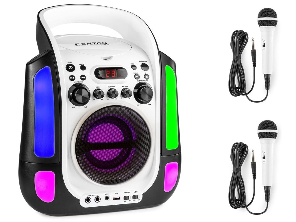 Fenton SBS30W karaoke systém s CD a 2ks bielych mikrofónov