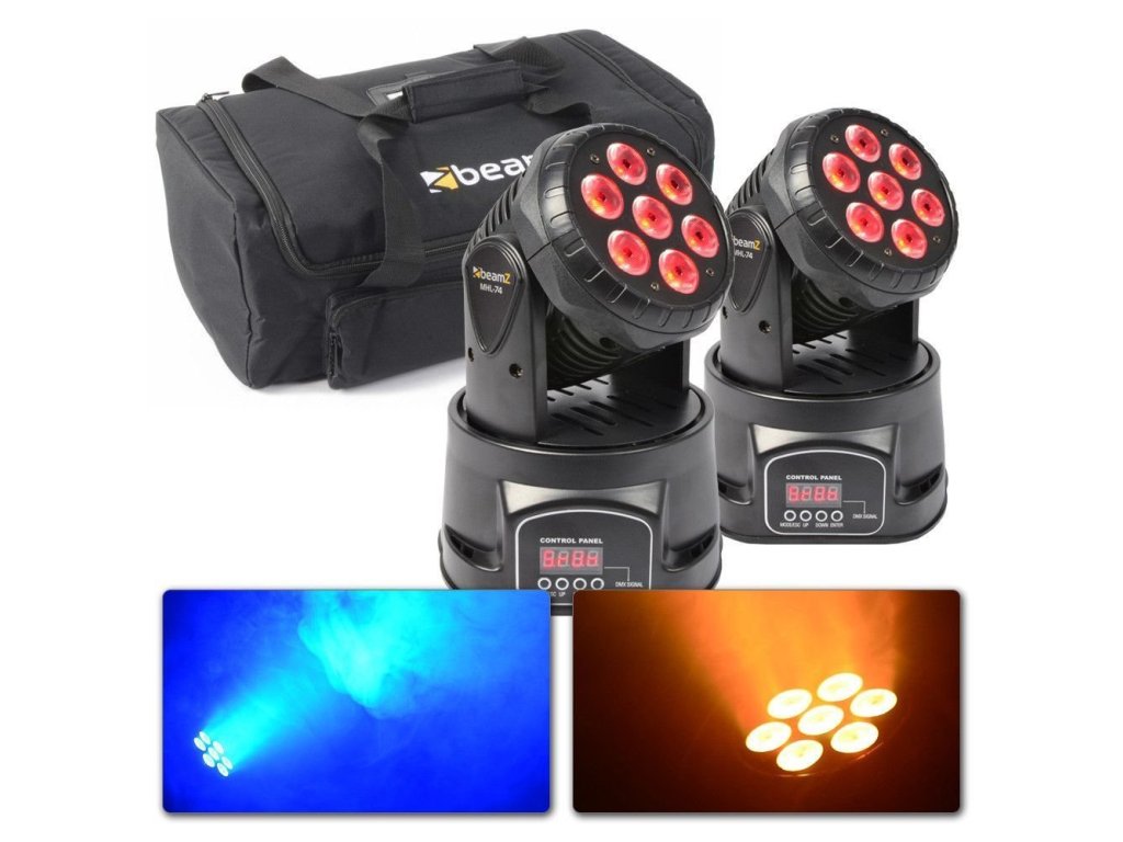 Výhodný set 2 pohyblivých hláv BeamZ MHL74 Wash 7x 10W LED (čierna) a mäkkého prepravného puzdra BeamZ AC-135.