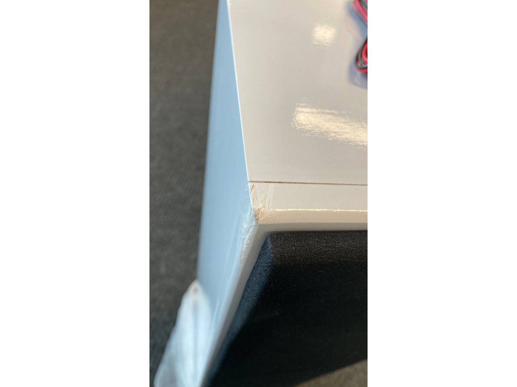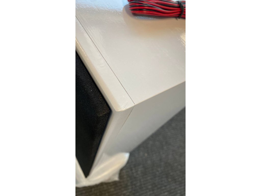 Popis chýb: Použitý tovar, na jednom z reproduktorov poškodený roh podstavca a na časti zažltnutá farba (po vystavení UV žiareniu), na tkanine už viditeľné stopy z predchádzajúceho používania.