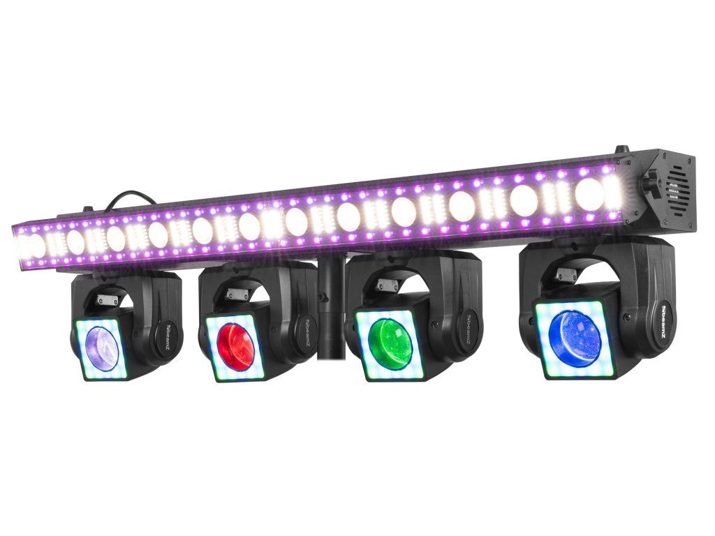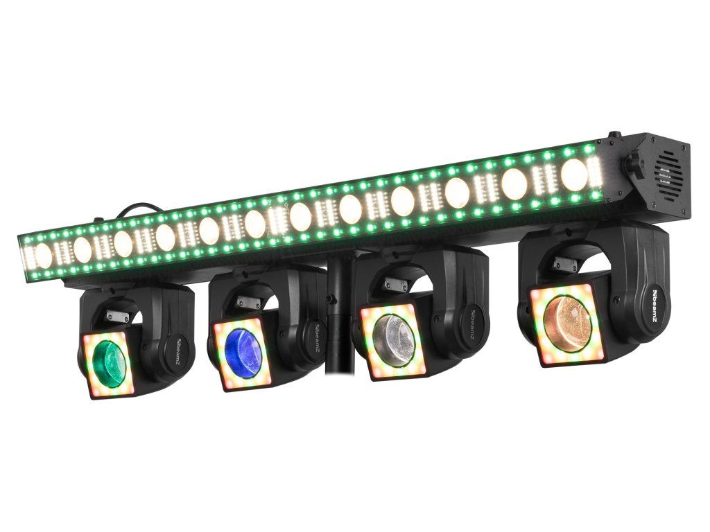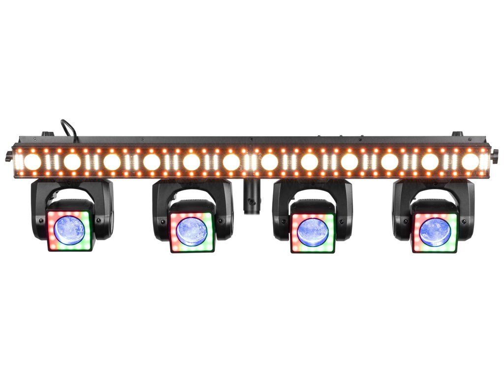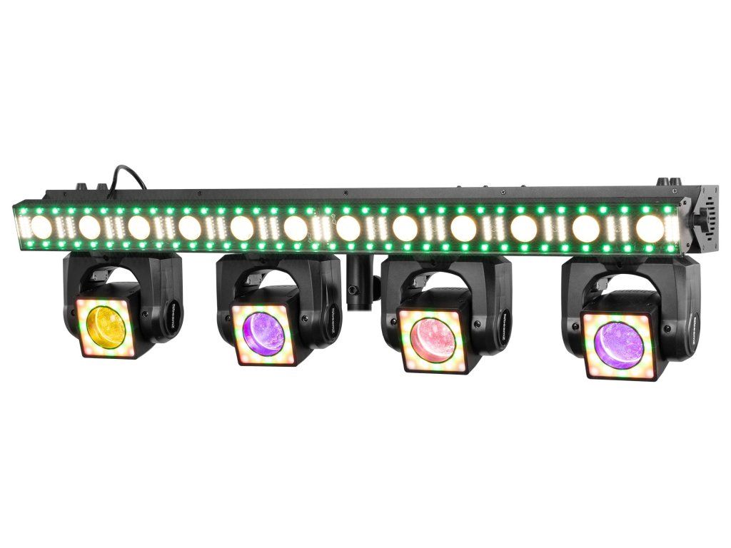 - Typ: Svetelný systém s LED barom a 4 pohyblivými hlavami