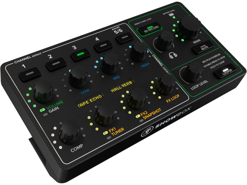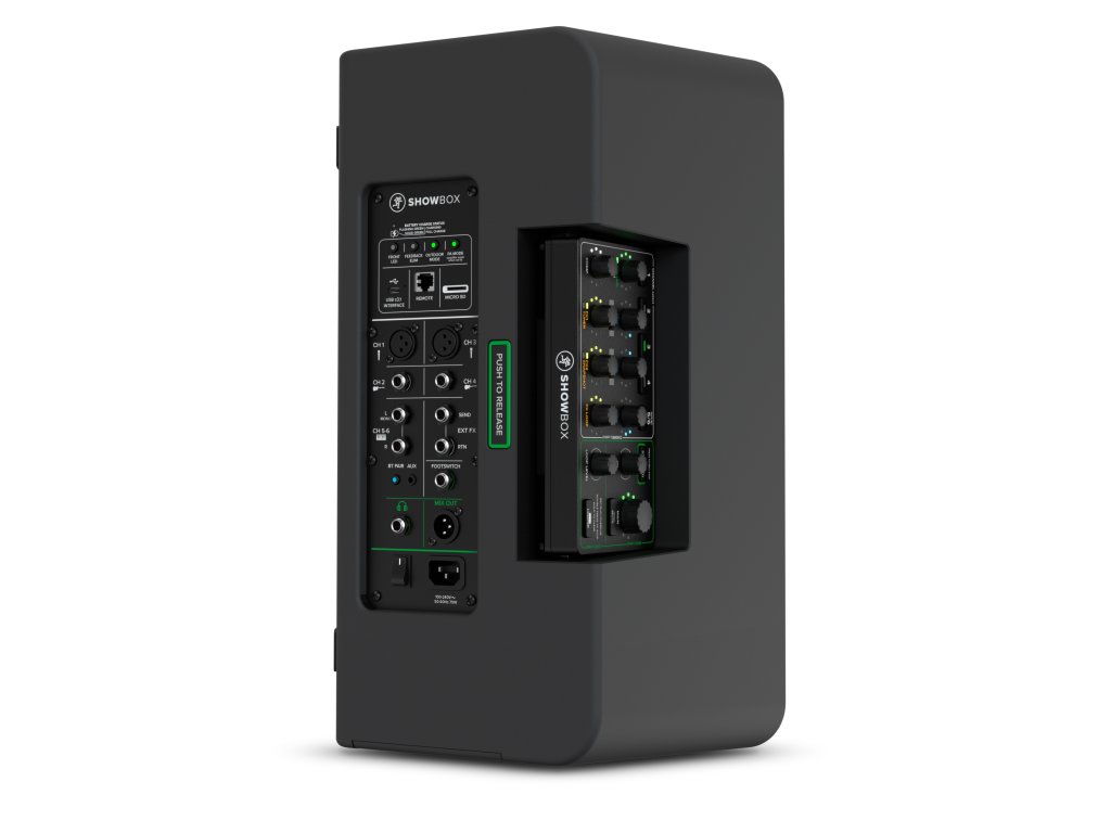 Mackie ShowBox je všestranný, napájaný batériou aktívny reproduktorový box, ktorý predstavuje kompletné riešenie pre živé vystúpenia. Jeho kľúčovou výhodou je odnímateľný šesťkanálový mixážny pult s integrovanou efektovou jednotkou a možnosťou USB audio pripojenia.