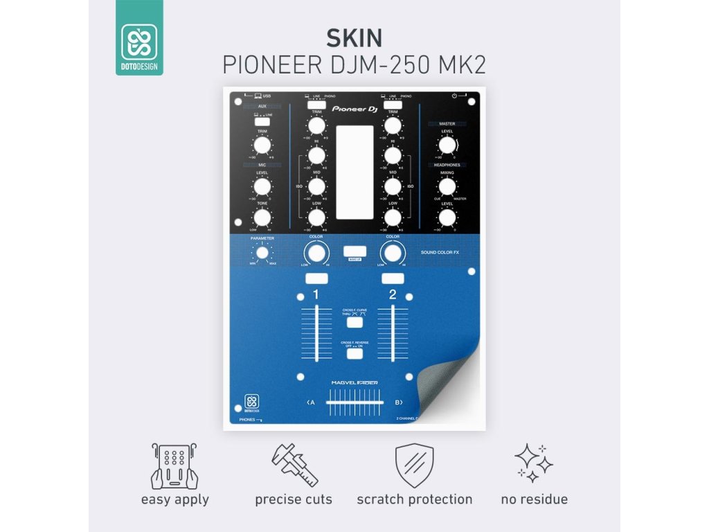 Nalepovací skin pre mixážny pult Pioneer DJM-250 MK2 vo vyhotovení COLORS DVS, farba blue (modrá).