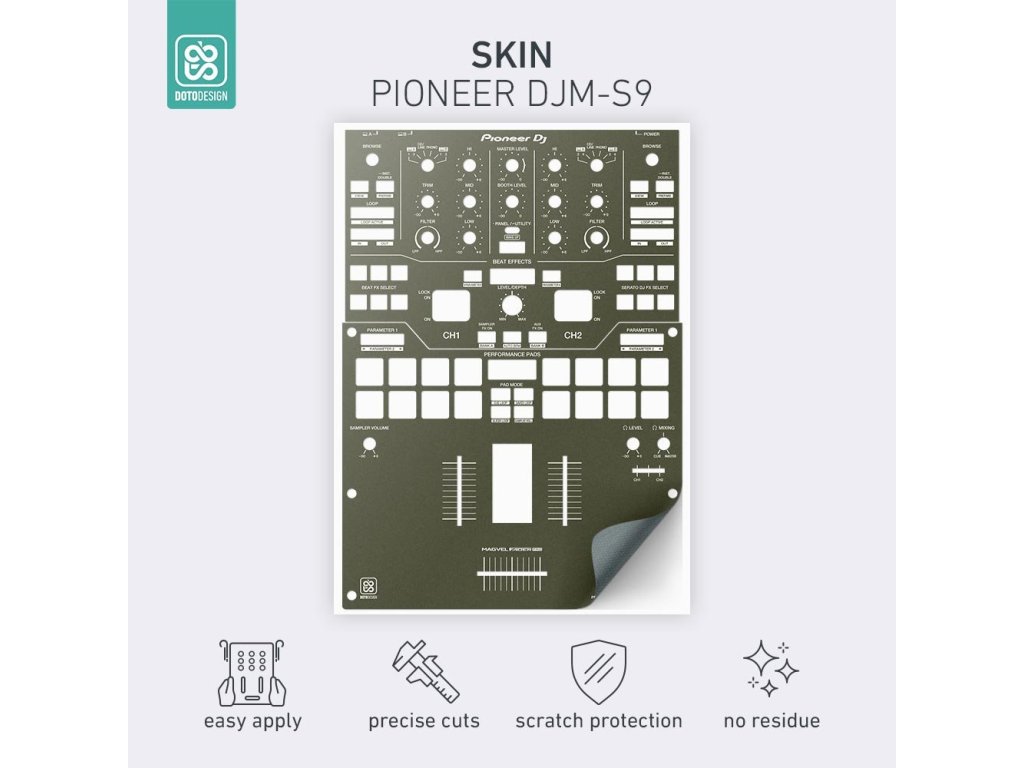Nalepovacie skiny Doto Design sú perfektné na prispôsobenie vzhľadu vášho DJ vybavenia (mixážne pulty, gramofóny, prehrávače, kontroléry). Na výber je veľké množstvo farieb a exkluzívnych vzorov na vytvorenie jedinečného vzhľadu. Skiny sú precízne vyrobené z prémiových materiálov, majú matný antireflexný povrch a ochránia vaše vybavenie pred poškriabaním a opotrebovaním. Vďaka novej adhezívnej vrstve je aplikácia veľmi jednoduchá a v prípade zloženia skinu nezostanú na technike žiadne stopy alebo zvyšky lepidla.