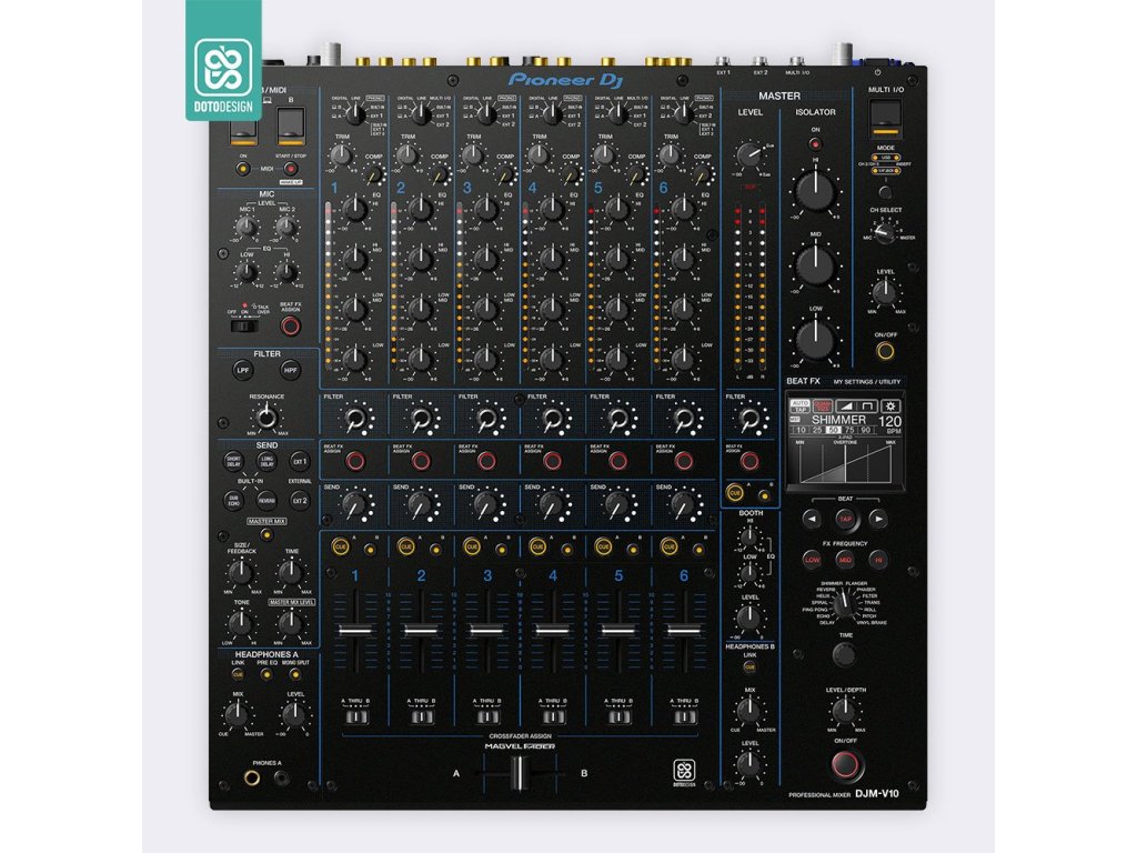 Nalepovací skin pre mixážny pult Pioneer DJM-V10 vo vyhotovení COLORS DVS, farba blue (modrá).
