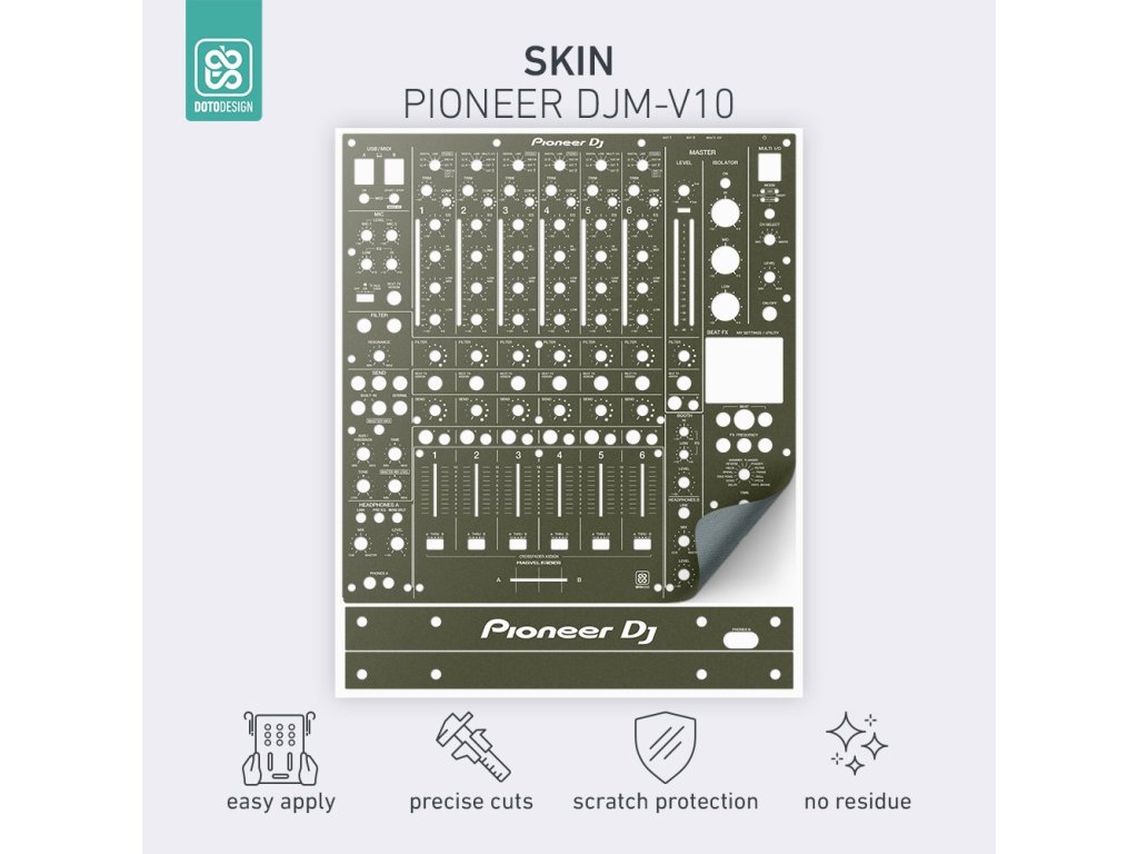 Nalepovací skin pre mixážny pult Pioneer DJM-V10 vo vyhotovení FULL COLORS, farba army green (vojenská zelená).