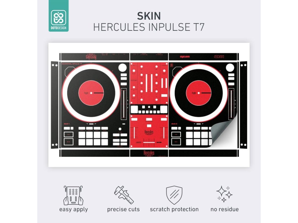 Nalepovací skin pre MIDI kontrolér Hercules Inpulse T7 vo vyhotovení COLORS, farba red (červená).