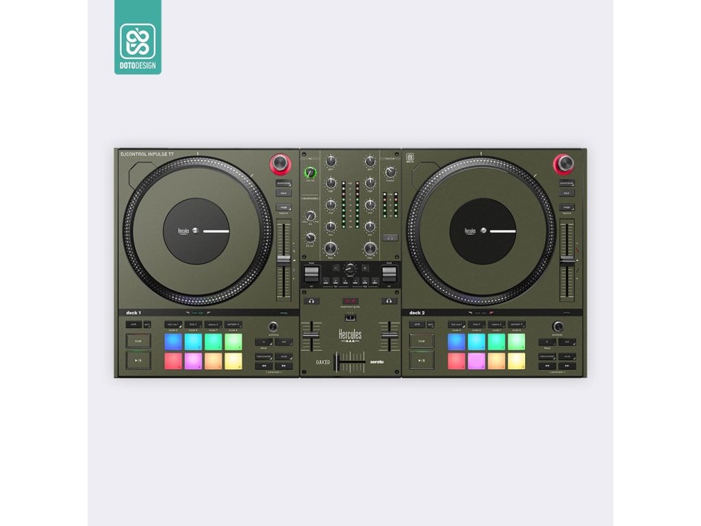 Nalepovací skin pre MIDI kontrolér Hercules Inpulse T7 vo vyhotovení FULL COLORS, farba army green (vojenská zelená).
