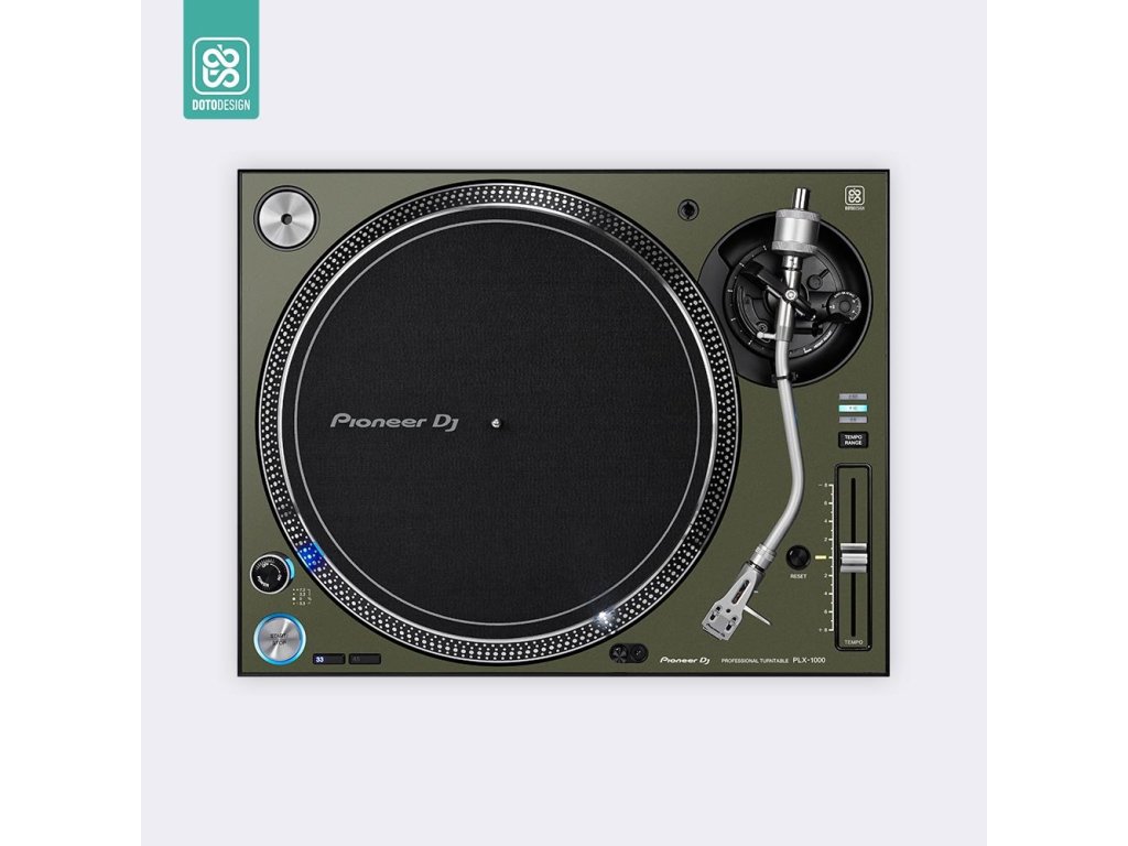 Nalepovací skin pre DJ gramofón Pioneer PLX-1000 vo vyhotovení FULL COLORS, farba army green (vojenská zelená).
