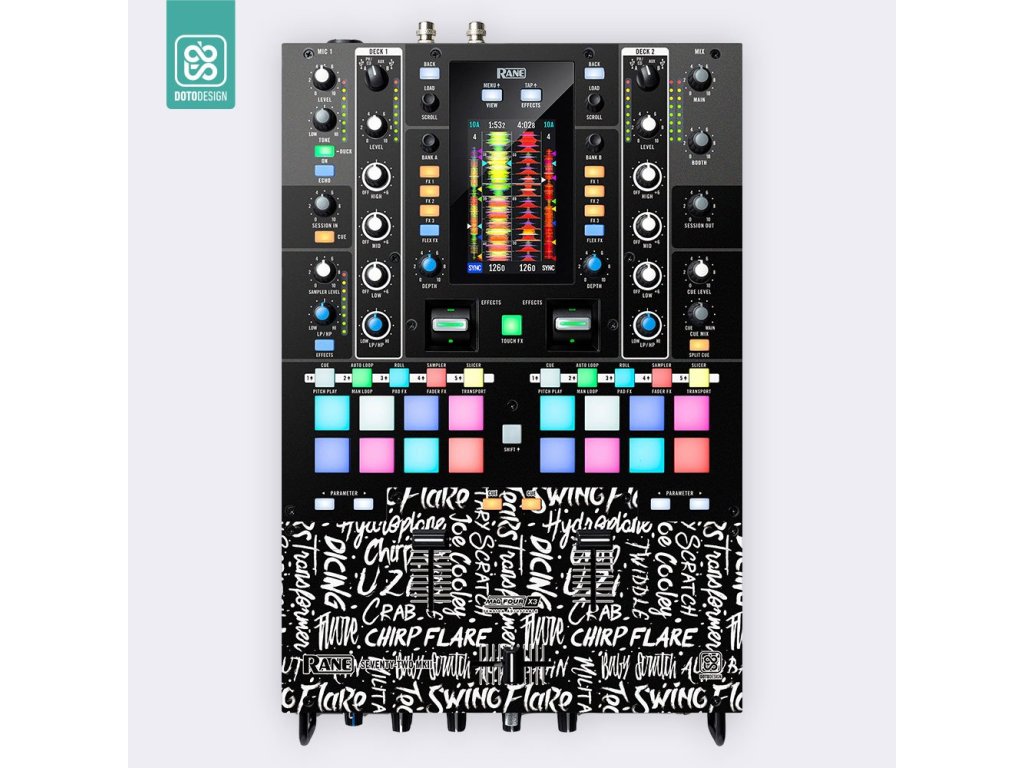 Nalepovací skin pre mixážny pult Rane Seventy-Two 72 MK2 vo vyhotovení SCRATCH STYLE, farba black (čierna).