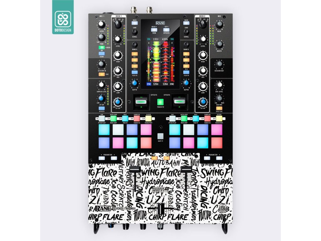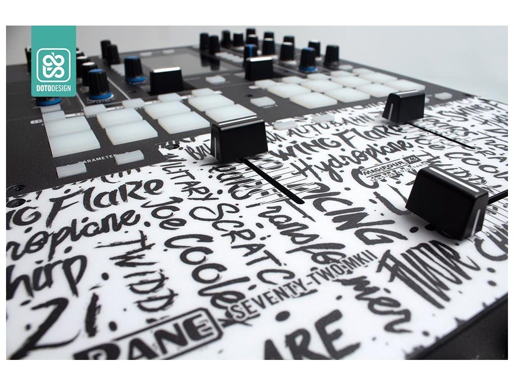 Nalepovací skin pre mixážny pult Rane Seventy-Two 72 MK2 vo vyhotovení SCRATCH STYLE, farba white (biela).