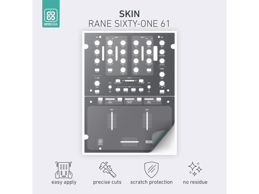 Nalepovacie skiny Doto Design sú perfektné na prispôsobenie vzhľadu vášho DJ vybavenia (mixážne pulty, gramofóny, prehrávače, kontroléry). Na výber je veľké množstvo farieb a exkluzívnych vzorov na vytvorenie jedinečného vzhľadu. Skiny sú precízne vyrobené z prémiových materiálov, majú matný antireflexný povrch a ochránia vaše vybavenie pred poškriabaním a opotrebovaním. Vďaka novej adhezívnej vrstve je aplikácia veľmi jednoduchá a v prípade zloženia skinu nezostanú na technike žiadne stopy alebo zvyšky lepidla.