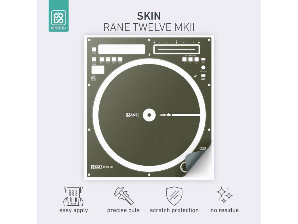 Nalepovací skin pre DJ gramofón Rane Twelve MK2 vo vyhotovení FULL COLORS, farba army green (vojenská zelená).