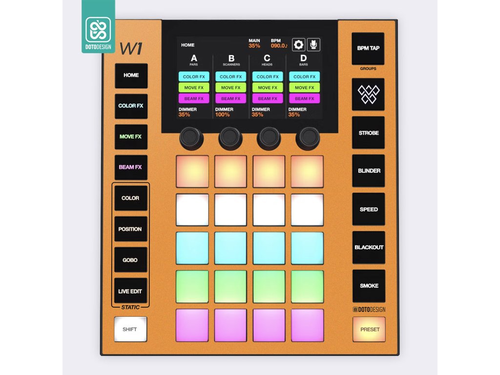Nálepkový polep pre DMX ovládací pult Wolfmix W1 (MK1 / MK2) v prevedenie FULL COLORS, farba sunset orange (oranžová).