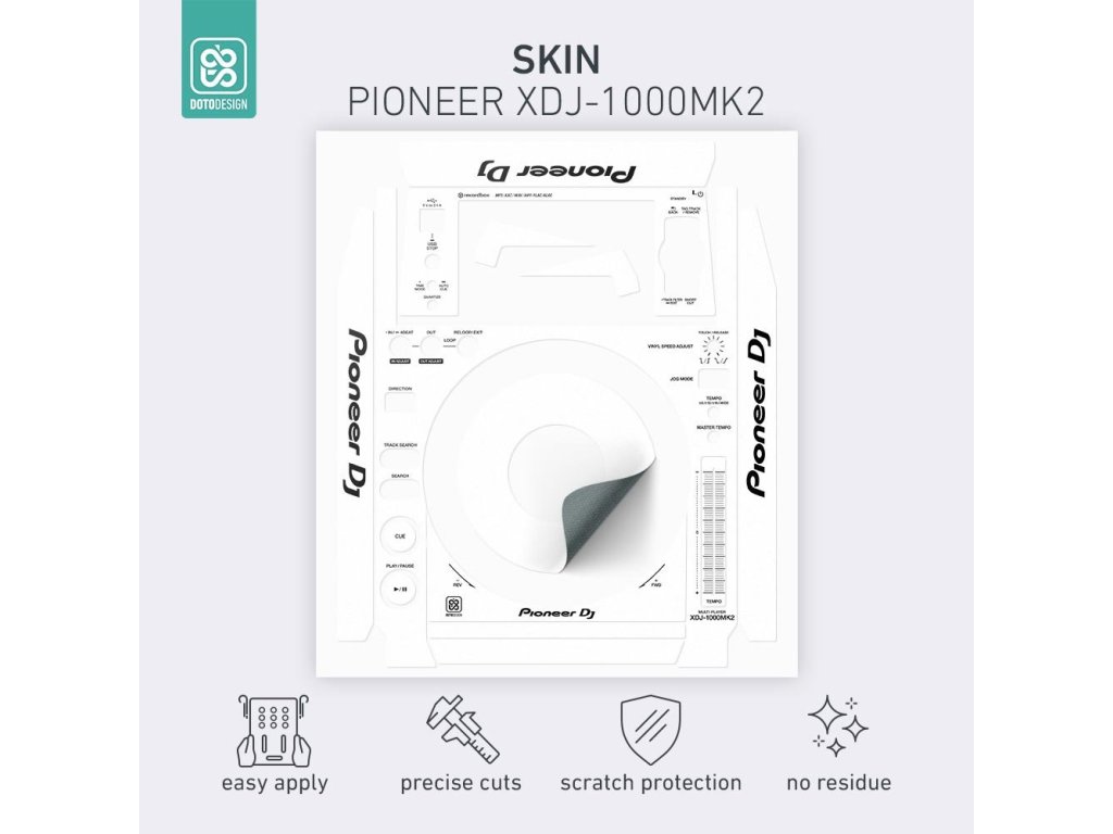 Nalepovacie skiny Doto Design sú perfektné na prispôsobenie vzhľadu vášho DJ vybavenia (mixážne pulty, gramofóny, prehrávače, kontroléry). Na výber je veľké množstvo farieb a exkluzívnych vzorov na vytvorenie jedinečného vzhľadu. Skiny sú precízne vyrobené z prémiových materiálov, majú matný antireflexný povrch a ochránia vaše vybavenie pred poškriabaním a opotrebovaním. Vďaka novej adhezívnej vrstve je aplikácia veľmi jednoduchá a v prípade zloženia skinu nezostanú na technike žiadne stopy alebo zvyšky lepidla.