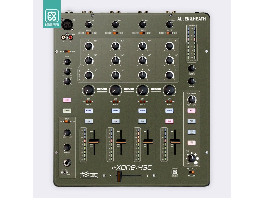 Nalepovací skin pre mixážny pult Allen & Heath XONE:43C vo vyhotovení FULL COLORS, farba army green (vojenská zelená).