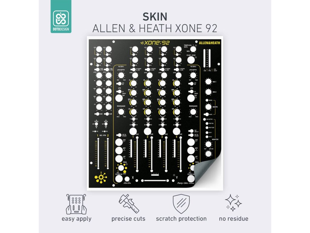 Nalepovací skin pre mixážny pult Allen & Heath XONE:92 vo vyhotovení COLORS DVS, farba yellow V.1 (žltá V.1).