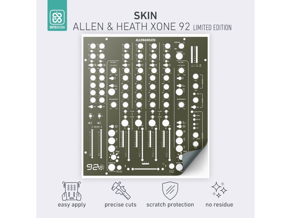 Nalepovací skin pre mixážny pult Allen & Heath XONE:92 Limited Edition vo vyhotovení FULL COLORS, farba army green (vojenská zelená).