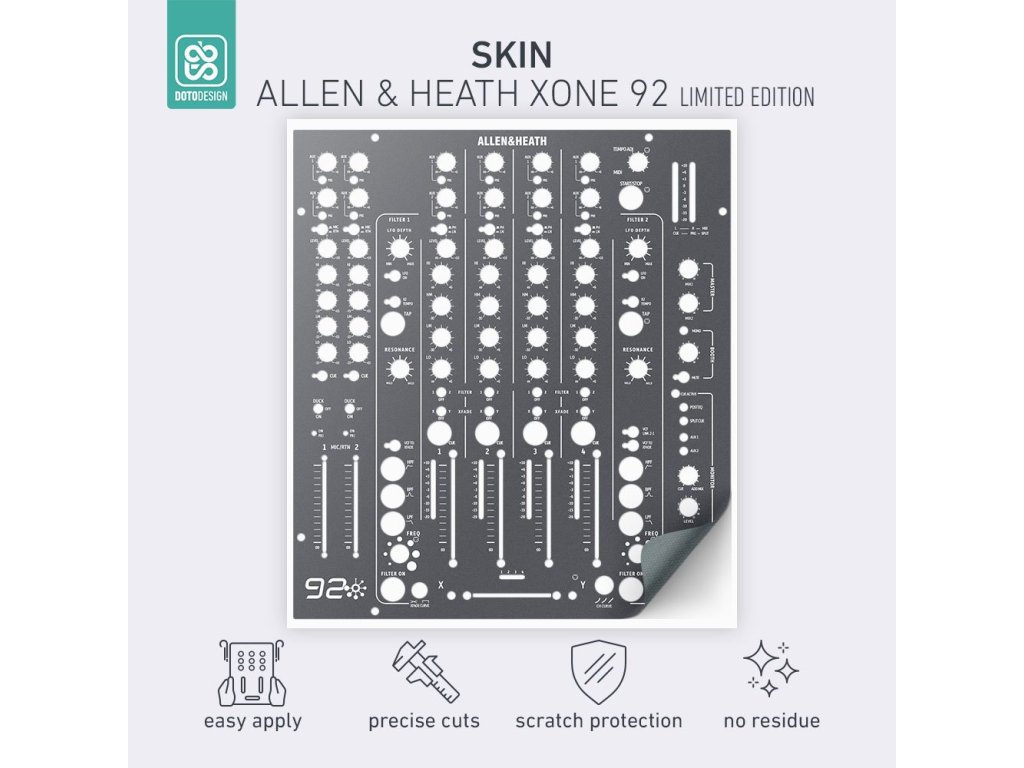 Nalepovací skin pre mixážny pult Allen & Heath XONE:92 Limited Edition vo vyhotovení FULL COLORS, farba graphite grey (grafitová sivá).
