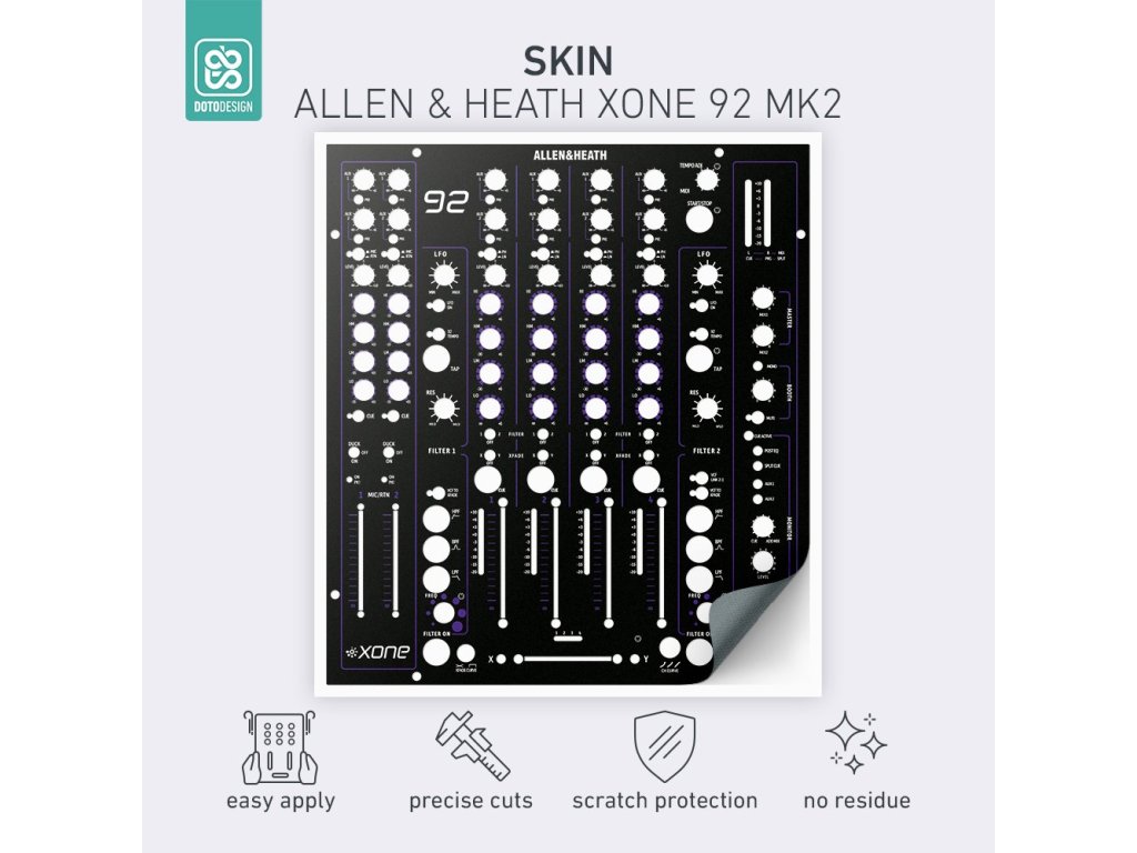 Nalepovací skin pre mixážny pult Allen & Heath XONE:92 MK2 vo vyhotovení COLORS DVS, farba purple (fialová).