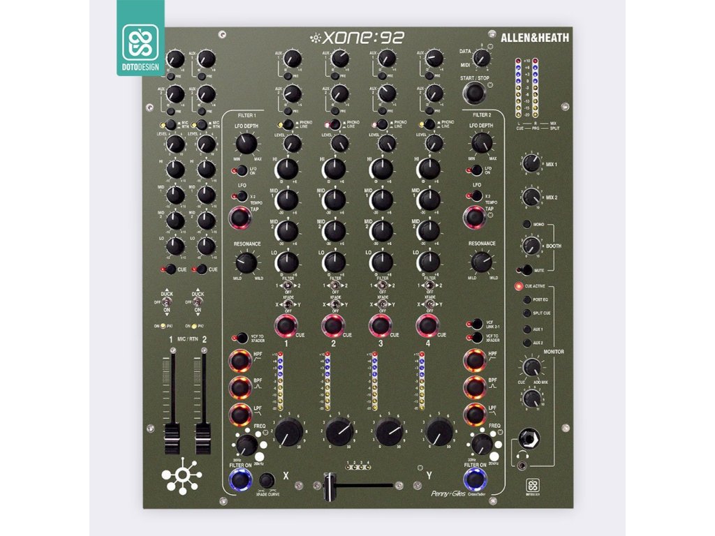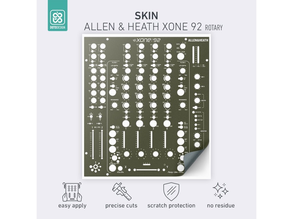 Nalepovací skin pre mixážny pult Allen & Heath XONE:92 Rotary vo vyhotovení FULL COLORS, farba army green V.1 (vojenská zelená V.1).