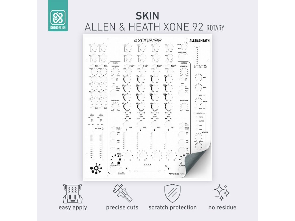 Nalepovací skin pre mixážny pult Allen & Heath XONE:92 Rotary vo vyhotovení FULL COLORS, farba white V.1 (biela V.1).