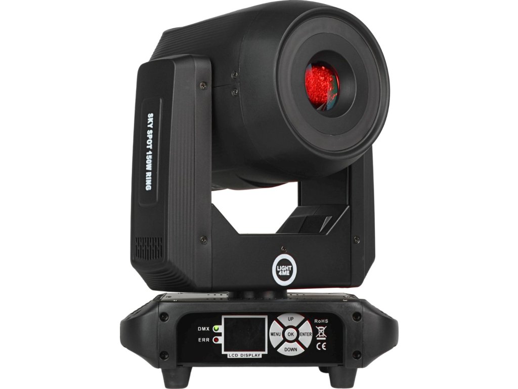 Nastavenie jasu displeja (20–100 %), kontrola podsvietenia displeja a otočenie jeho orientácie, sledovanie teploty svetelného zdroja, reset a obnovenie továrenského nastavenia – to všetko robí z Light4Me Sky Spot 150W Ring zariadenie priateľské ako pre začínajúcich DJov, tak pre skúsených osvetľovačov. Monitorovanie DMX umožňuje okamžite reagovať na prípadné chyby v komunikácii.