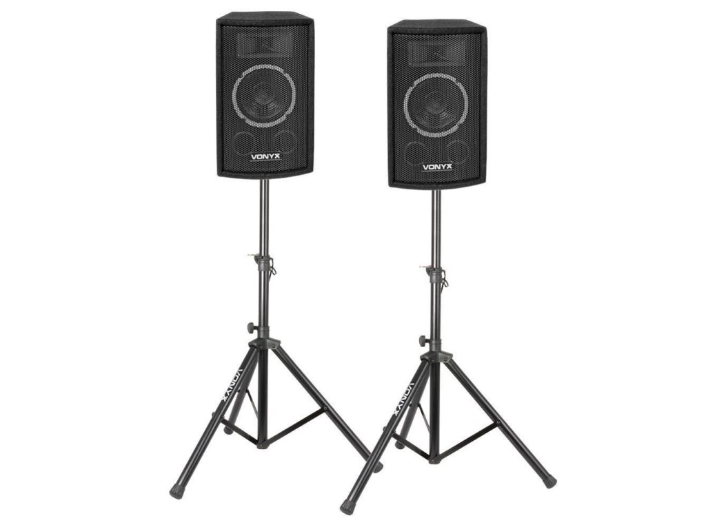 Výhodný set reproboxov Vonyx SL6 6" 250W, reproduktorových stojanov Vonyx LS01K a prepojovacích káblov Power Dynamics CX29-6 6m.