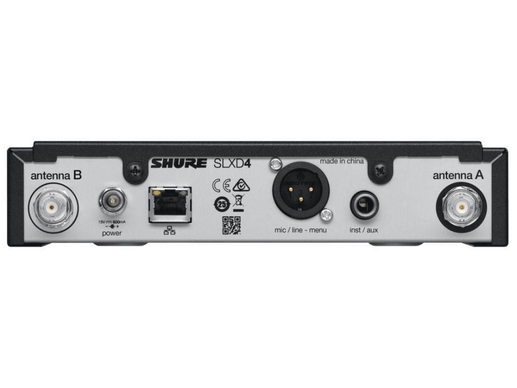V závislosti od prevádzkového režimu je možné bez nežiaducich interferencií prevádzkovať až 12 systémov súčasne. Rýchle sprevádzkovanie zostavy uľahčuje automatické IR párovanie prijímača s vysielačom. K prehľadnému ovládaniu prispievajú vysoko kontrastné LCD displeje. Prijímač SLXD4 je vybavený výstupnými konektormi XLR a jack (TRS) umiestnenými na zadnej strane. Ethernetový port slúži na sieťové prepojenie s ďalšími kompatibilnými komponentmi.
