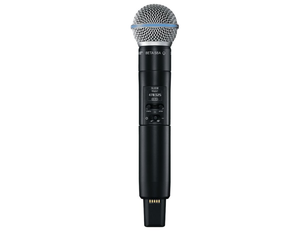 Ručný vysielač SLXD2 je osadený dynamickou mikrofónnou kapsulou Beta 58A, ktorá poskytuje čistý neskreslený zvuk v celom spektre od 50 Hz do 16 kHz. Jej frekvenčná odozva je optimalizovaná pre snímanie sólového a sprievodného vokálu. Superkardioidálna smerová charakteristika umožňuje presné zameranie zdroja zvuku, eliminuje nežiaduce presluchy a minimalizuje zafarbenie signálu pri snímaní mimo osi. Je ideálnou voľbou pre blízke snímanie v prostredí s vyšším okolitým hlukom. Vďaka systému vymeniteľných kapsúl je možné SLXD2 v prípade potreby vybaviť iným typom mikrofónnej hlavy (predávané ako zvláštne príslušenstvo). Vysielač je schopný na jedno nabitie pracovať po dobu až 8 hodín. Na napájanie je možné použiť dve AA batérie alebo akumulátor Shure SB903.
