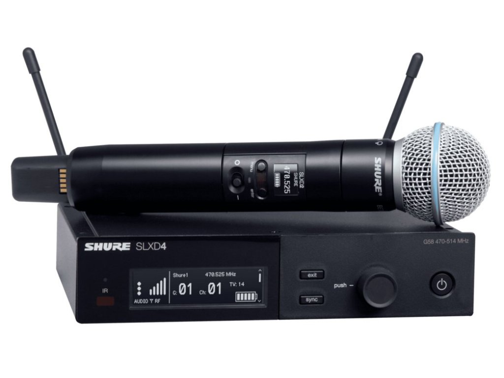 Shure SLXD24E/B58-G59 je digitálny bezdrôtový set určený na snímanie spevu. Skladá sa z ručného vysielača SLXD2 osadeného mikrofónnou kapsulou Beta 58A a prijímača SLXD4. Súprava pracuje na frekvenciách od 470 do 514 MHz a poskytuje transparentný zvuk v 24-bitovom rozlíšení s dynamickým rozsahom až 120 dB. Uplatní sa všade, kde sú kladené vysoké požiadavky na spoľahlivosť prenosu a čistotu zvuku. Prehľadné ovládanie umožňuje jednoduché sprevádzkovanie celého systému. Prijímač je prispôsobený na montáž do racku.