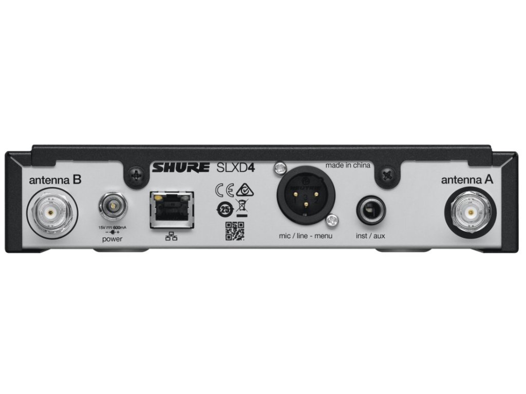V závislosti od prevádzkového režimu je možné bez nežiaducich interferencií prevádzkovať až 12 systémov súčasne. Rýchle sprevádzkovanie zostavy uľahčuje automatické IR párovanie prijímača s vysielačom. K prehľadnému ovládaniu prispievajú vysoko kontrastné LCD displeje. Prijímač SLXD4 je vybavený výstupnými konektormi XLR a jack (TRS) umiestnenými na zadnej strane. Ethernetový port slúži na sieťové prepojenie s ďalšími kompatibilnými komponentmi.