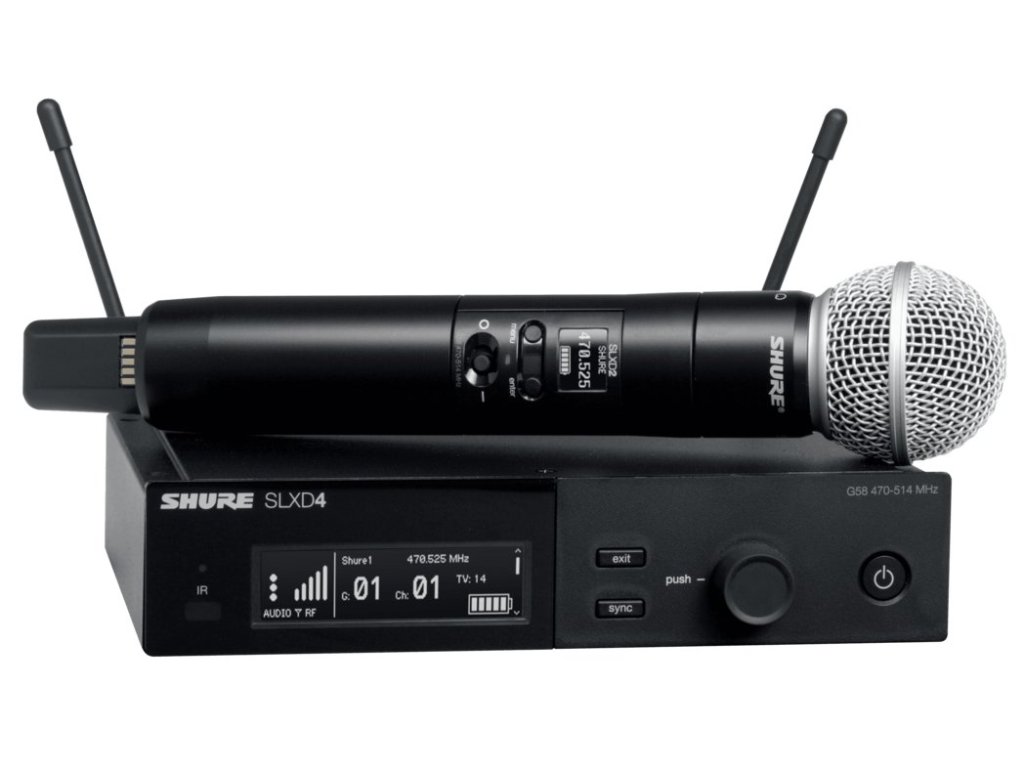 Ručný vysielač SLXD2 je osadený legendárnou dynamickou mikrofónnou kapsulou SM58, ktorá poskytuje čistý neskreslený zvuk v celom spektre od 50 Hz do 15 kHz. Jej frekvenčná charakteristika je prispôsobená na snímanie živého spevu. Kardioidna smerová charakteristika umožňuje presné zameranie zdroja zvuku a eliminuje nežiaduce presluchy. Vďaka systému vymeniteľných kapsúl je možné SLXD2 v prípade potreby vybaviť iným typom mikrofónnej hlavy (predávané ako zvláštne príslušenstvo). Vysielač je schopný na jedno nabitie pracovať po dobu až 8 hodín. Na napájanie je možné použiť dve AA batérie alebo akumulátor Shure SB903.