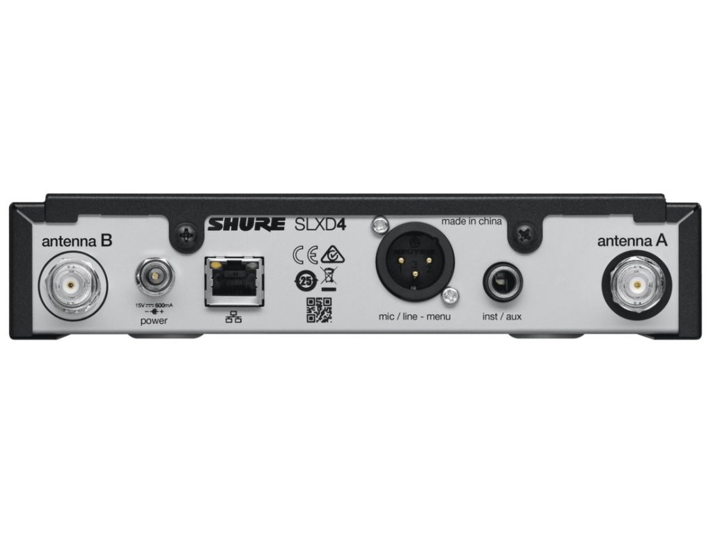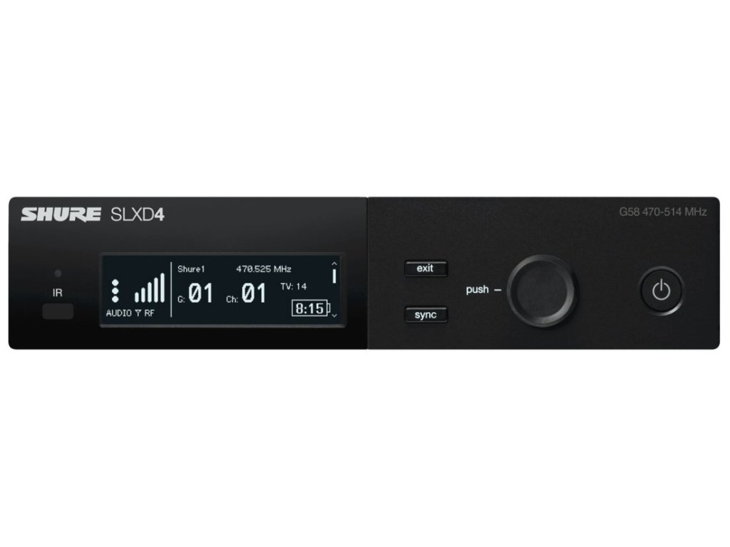 Shure SLXD4E-H56 je jednokanálový digitálny prijímač kompatibilný s bezdrôtovými vysielačmi rady SLXD. Pracuje v UHF pásme na frekvenciách od 518 do 562 MHz a poskytuje transparentný zvuk v 24-bitovom rozlíšení s dynamickým rozsahom až 120 dB. Uplatní sa všade, kde sú kladené vysoké požiadavky na spoľahlivosť prenosu a čistotu zvuku. Prijímač je možné ľubovoľne kombinovať s ručnými (hadheld) vysielačmi SLXD2 a bodypack vysielačmi SLXD1. Vďaka širokej ponuke kompatibilných komponentov si môže používateľ vytvoriť zostavu presne zodpovedajúcu jeho potrebám.