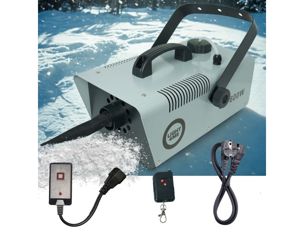 Telo zariadenia vyrobené z odolného železa v štýlovom strieborno-čiernom prevedení nielen skvele vyzerá, ale tiež zaručuje odolnosť proti poškodeniu a dlhú životnosť. Snehostroj je ideálny pre svadobných koordinátorov, majiteľov klubov, animátorov a eventové agentúry, ktoré chcú svojim klientom ponúknuť nezabudnuteľné špeciálne efekty. Bez ohľadu na to, či plánujete zimnú udalosť, rozprávkové predstavenie alebo vianočnú akciu – Light4Me SM 600W je vaším spoľahlivým nástrojom na vytvorenie výnimočnej atmosféry.