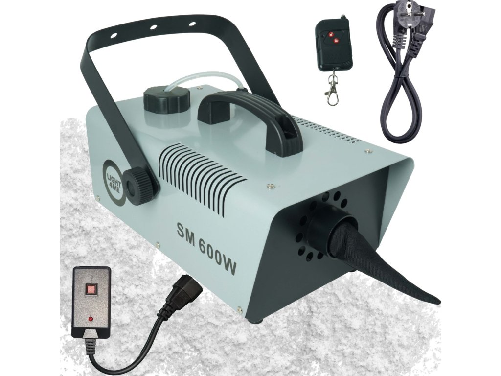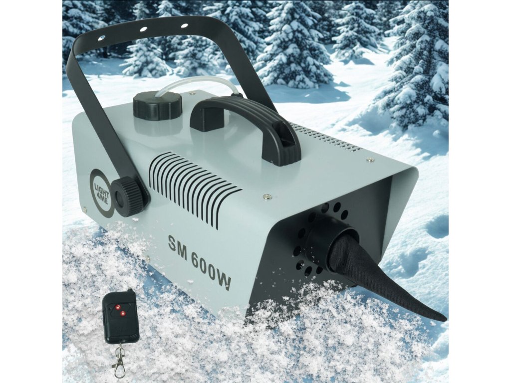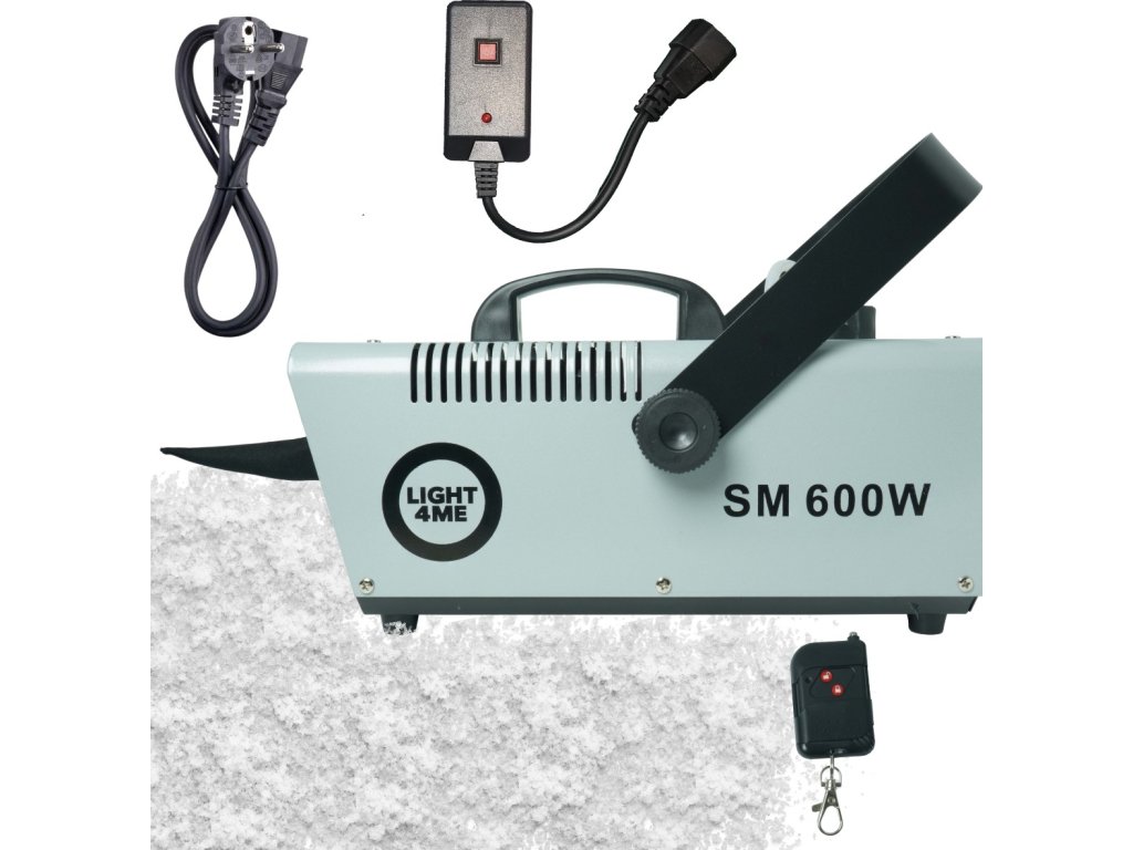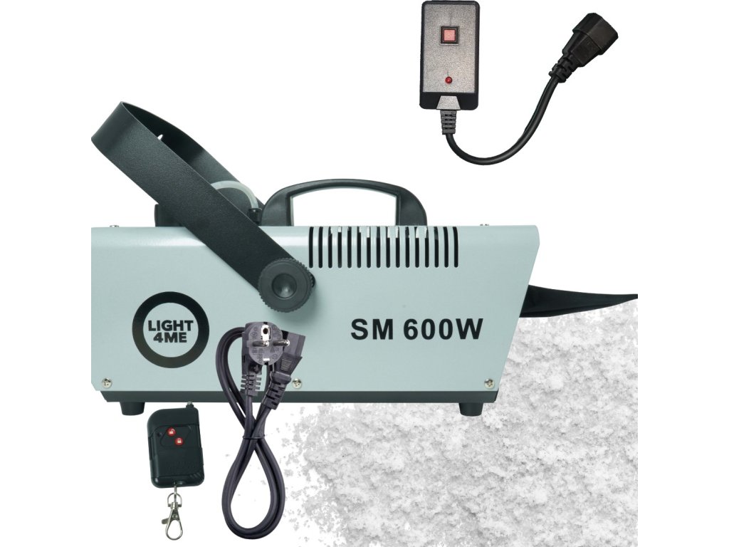 Light4Me SM 600W je profesionálny výrobník snehu, ktorý v priebehu chvíľky zaplní priestor realisticky vyzerajúcim, ľahkým snehom. Ideálny pre pódiá, vonkajšie akcie (pod prístreškom), fotoseansy a dokonca aj na dekoráciu výkladov. Výnimočne účinný a ľahko ovládateľný, skvele sa hodí pre DJov, v kultúrnych domoch aj na firemných akciách. Dosah pokrytia až 30 m² zaručuje efekt, ktorý nadchne publikum na každej udalosti. Vďaka pohodlnému bezdrôtovému ovládaniu pomocou praktického infračerveného diaľkového ovládača môžete vytvoriť snehovú atmosféru kedykoľvek – bez obmedzení.