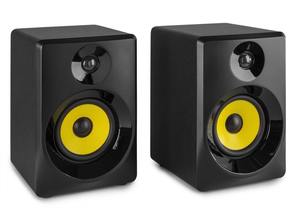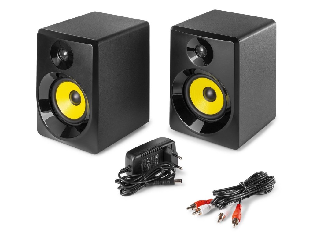 Štúdiové monitory SM Active Studio sú profesionálne štúdiové monitory a sú vhodné aj na multimediálne použitie. Tieto reproduktory sú navrhnuté tak, aby vytvárali plochú frekvenčnú odozvu pre (domáce) štúdiové nahrávanie aj mixovanie. Hlasitosť, stredy, basy a ovládacie prvky výšok sú umiestnené na zadnom paneli pre individuálne úpravy na základe vašich osobných preferencií. Ľavý monotir obsahuje vstavaný zosilňovač, zatiaľ čo pravý je pasívny. Stačí pripojiť ľavú stranu k napájaniu a prepojiť ľavý monitor s pravým pomocou priloženého kábla. Vonyx SM Active Studio Monitor reprezentujú novú úroveň v cenovo dostupných štúdiových monitoroch.