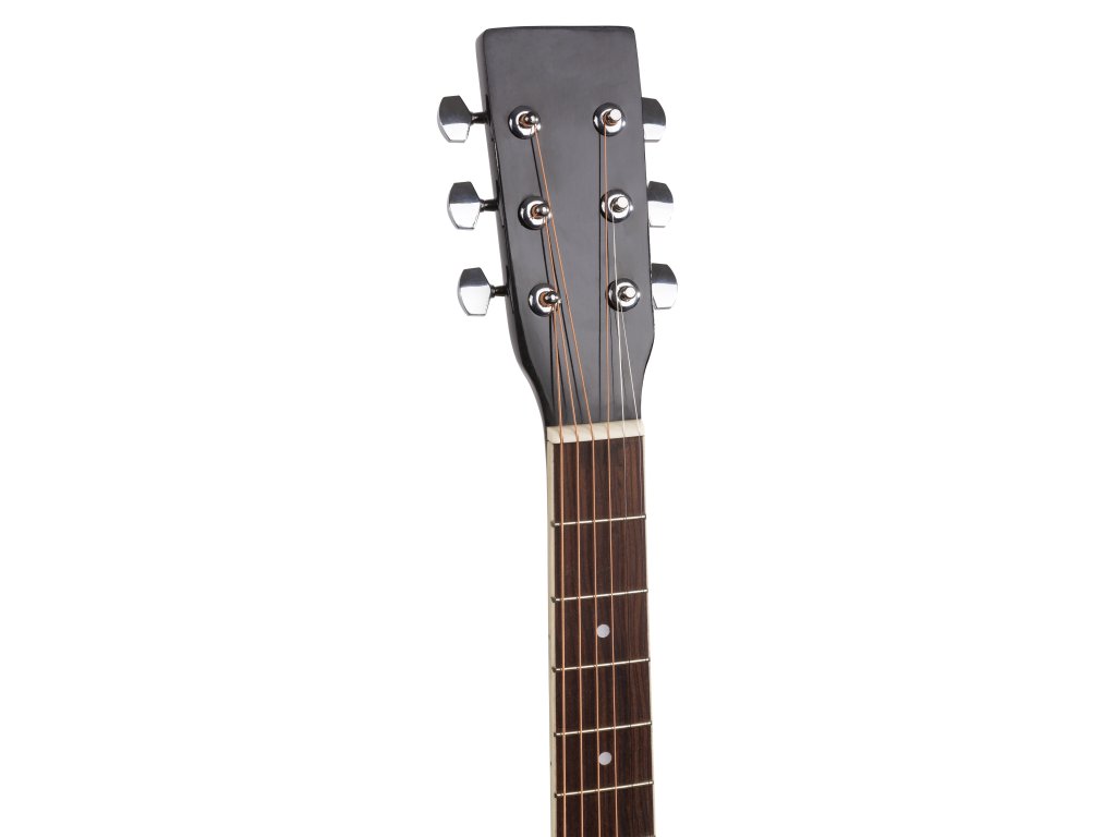 Táto akustická gitara s oceľovými strunami je ideálna pre každého, kto chce začať hrať, alebo sa do toho chce vrátiť. Gitara je v plnej veľkosti s oceľovými strunami. Telo je navrhnuté klasicky dreadnought štýl, ktorý zaisťuje úžasný kombinovaný zvuk so západným vzhľadom. Tento model je vhodný pre všetky vekové kategórie od veku 10 rokov a vyššie. So všetkým príslušenstvom ste pripravení začať hrať okamžite.