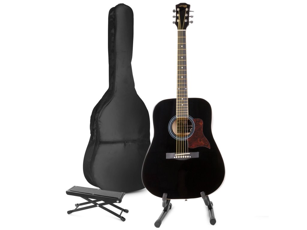 SoloJam Súprava westernovej akustickej gitary so stojanom na gitaru a podnožkou - Farba čierna