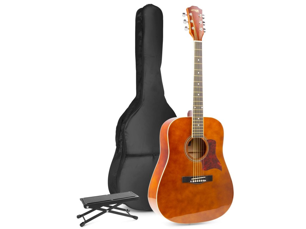 MAX SoloJam set obsahuje westernovú akustickú 4/4 gitaru s oceľovými strunami, obal na gitaru a príslušenstvo. Farba hnedá.