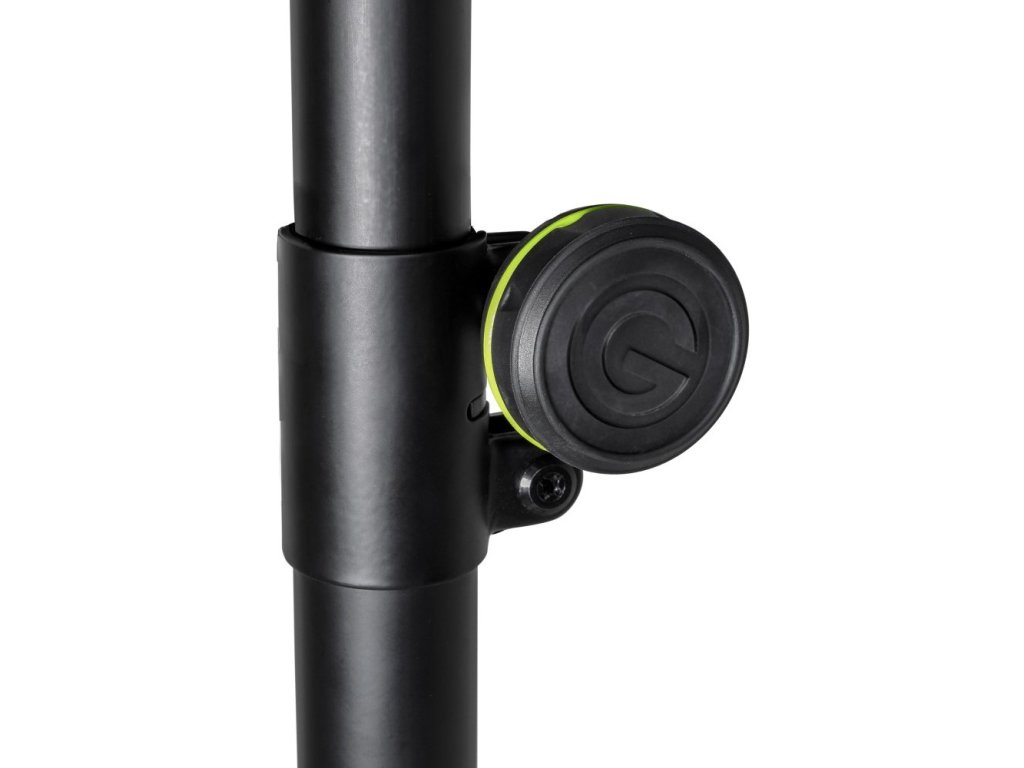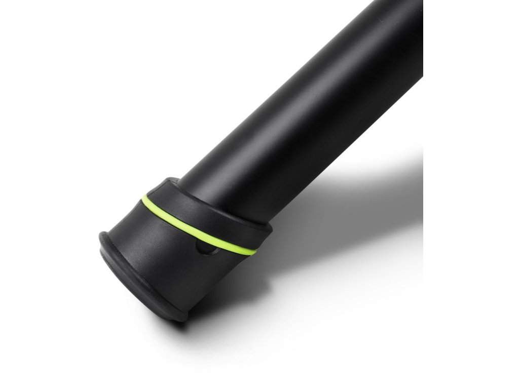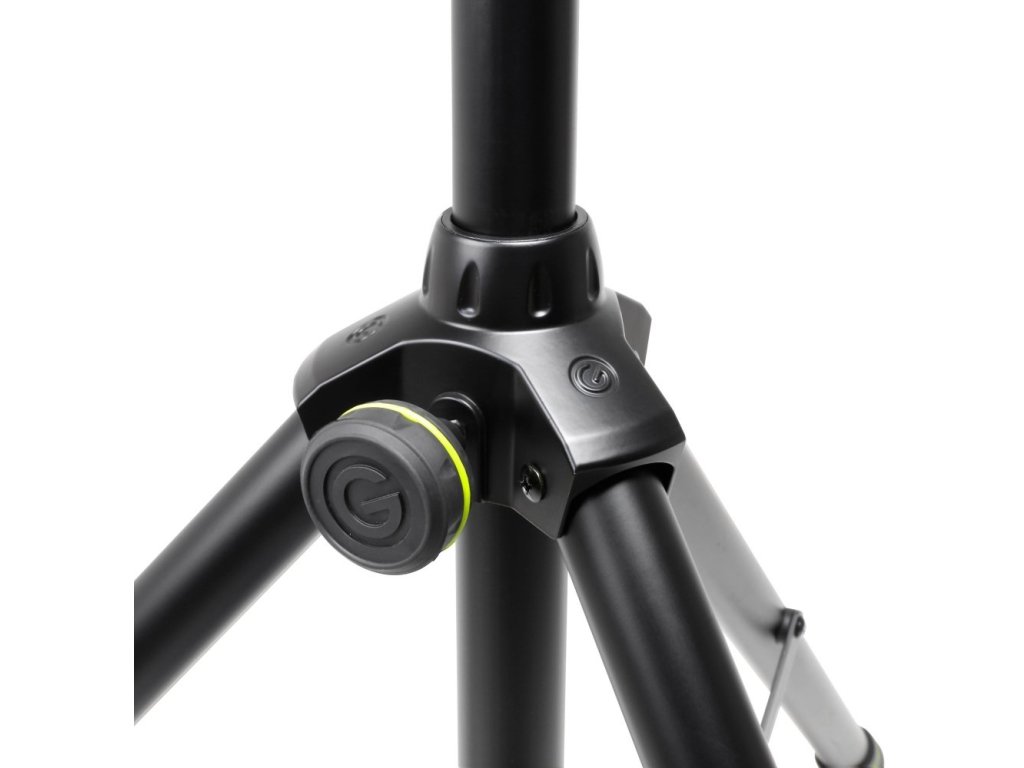 Stojan zaisťuje maximálnu stabilitu vďaka oporným nohám z tlakovo liateho hliníka a výškovo nastaviteľnej oceľovej objímke, ktorá je prakticky nezničiteľná – rovnako ako u všetkých stojanov Gravity.