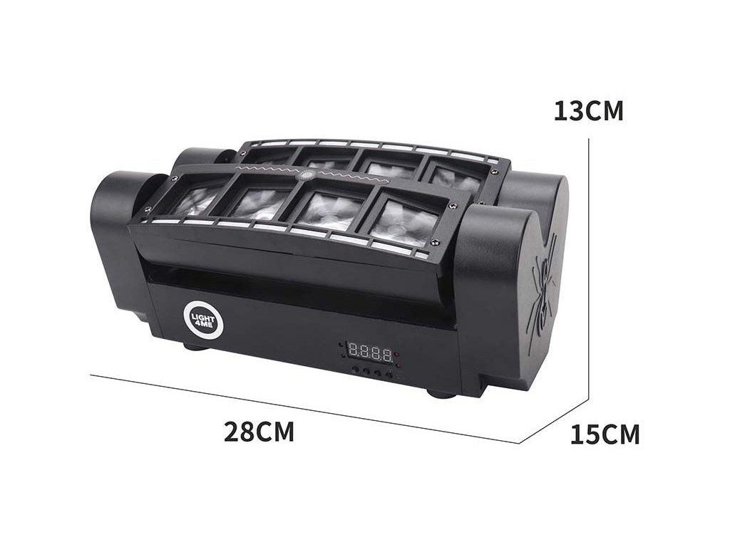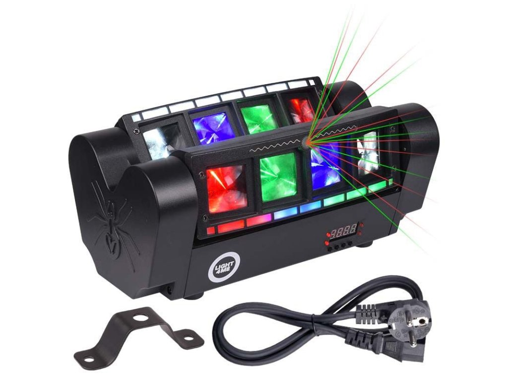Light4Me Spider Strobo Laser je zaujímavou ponukou pre stacionárne aplikácie v tanečných kluboch a diskotékach, ale aj pre mobilných DJov, ktorí hľadajú dobré, ale zároveň cenovo dostupné diskotékové osvetlenie, ktoré bude jednoduché a veľmi mobilné. LED multiefekt ponúka všetko, čo potrebujete na vytvorenie dokonalej show na akejkoľvek akcii.