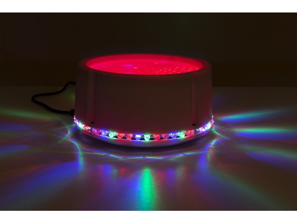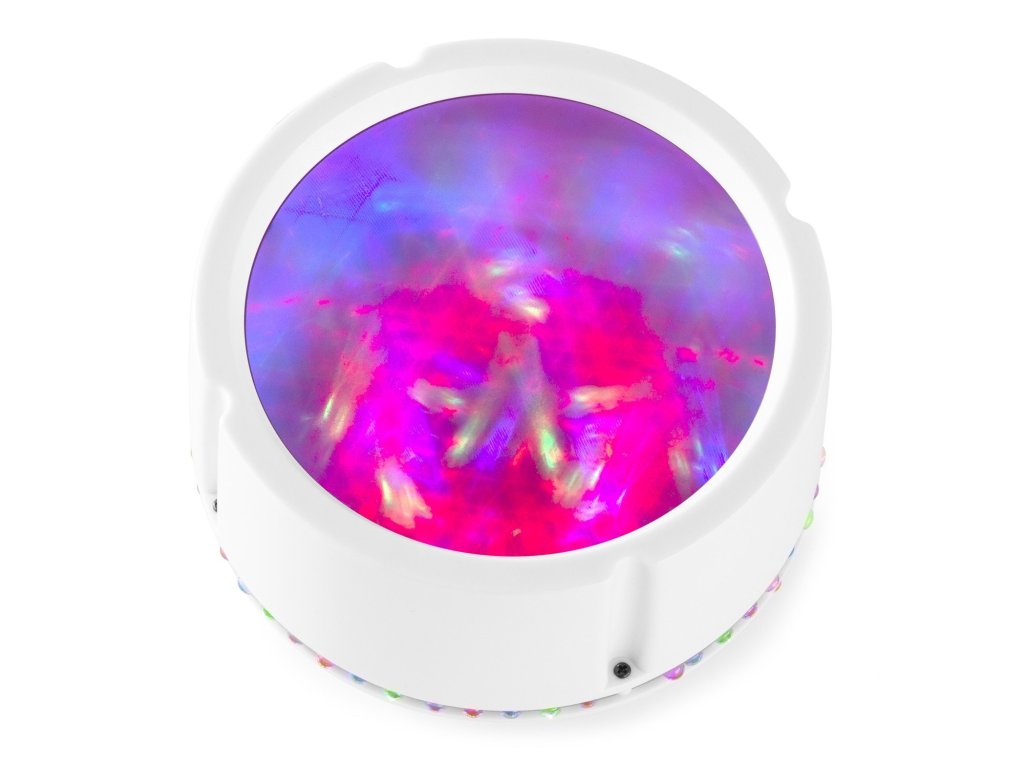 Dva efekty v jednom - Spinning Sunflower s 3D Wash efektom. 47 LED diód Sunfloweru vytvára rotujúci efekt, zatiaľ čo 61 LED diód Wash efektu vytvára silné 3D lúče uprostred. Efekt je ovládaný hudbou a je pekne viditeľný najmä vo večerných hodinách. Za málo peňazí získate veľa "muziky". Ide o skvelú voľbu pre DJs, na večierky, do klubov, krčiem, atď.