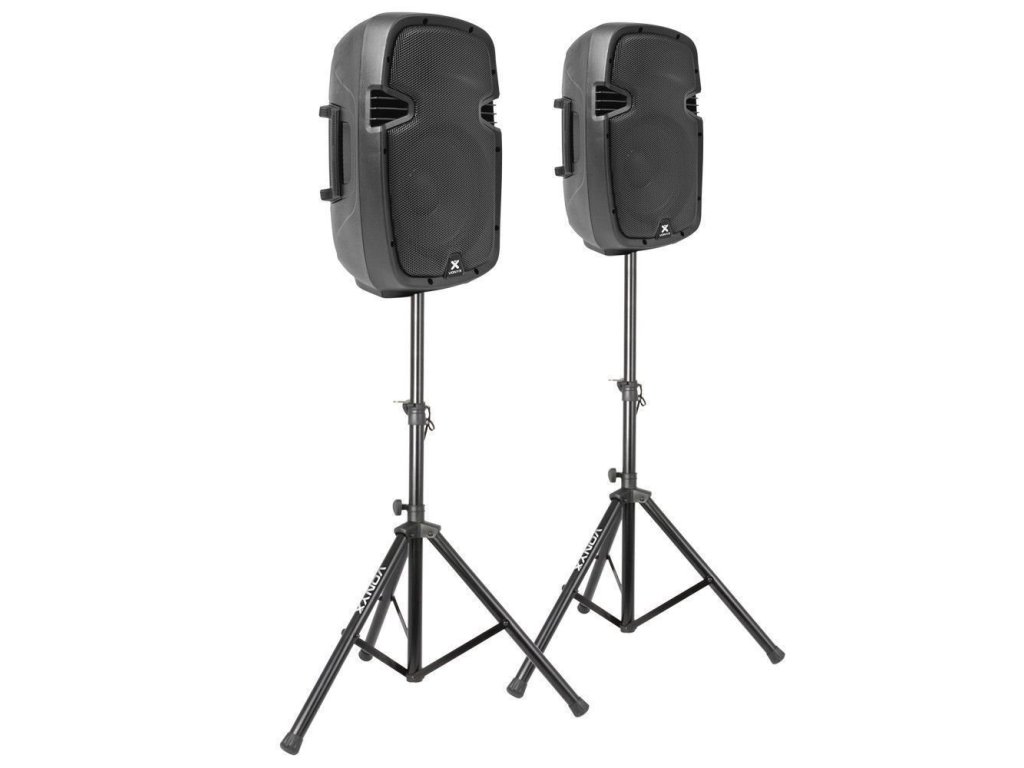 Výhodný set 2 aktívnych reproboxov Vonyx SPJ-1000A 10" 400W so stojanmi Vonyx LS01K Kit.