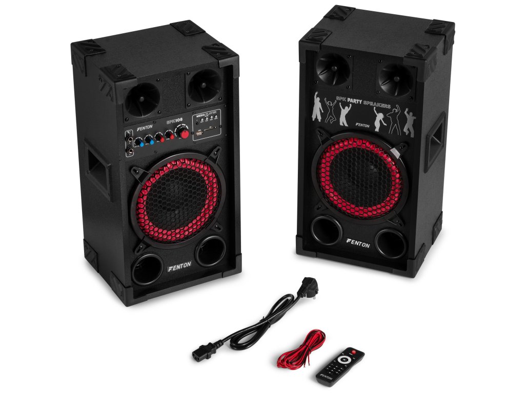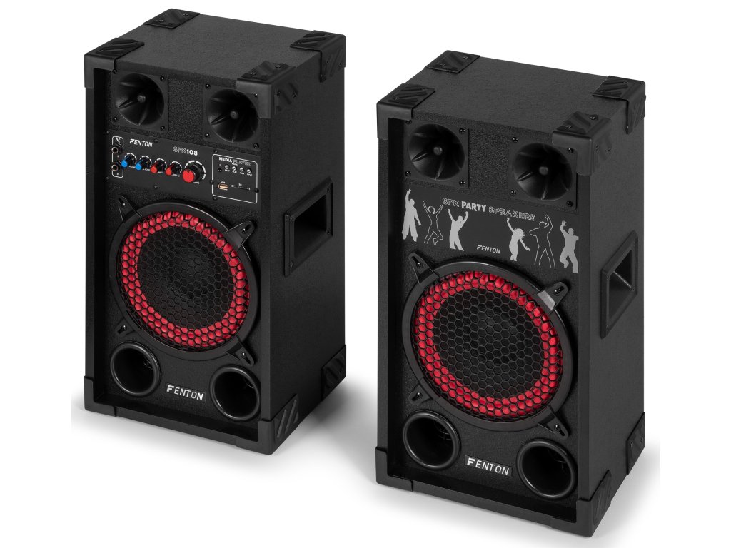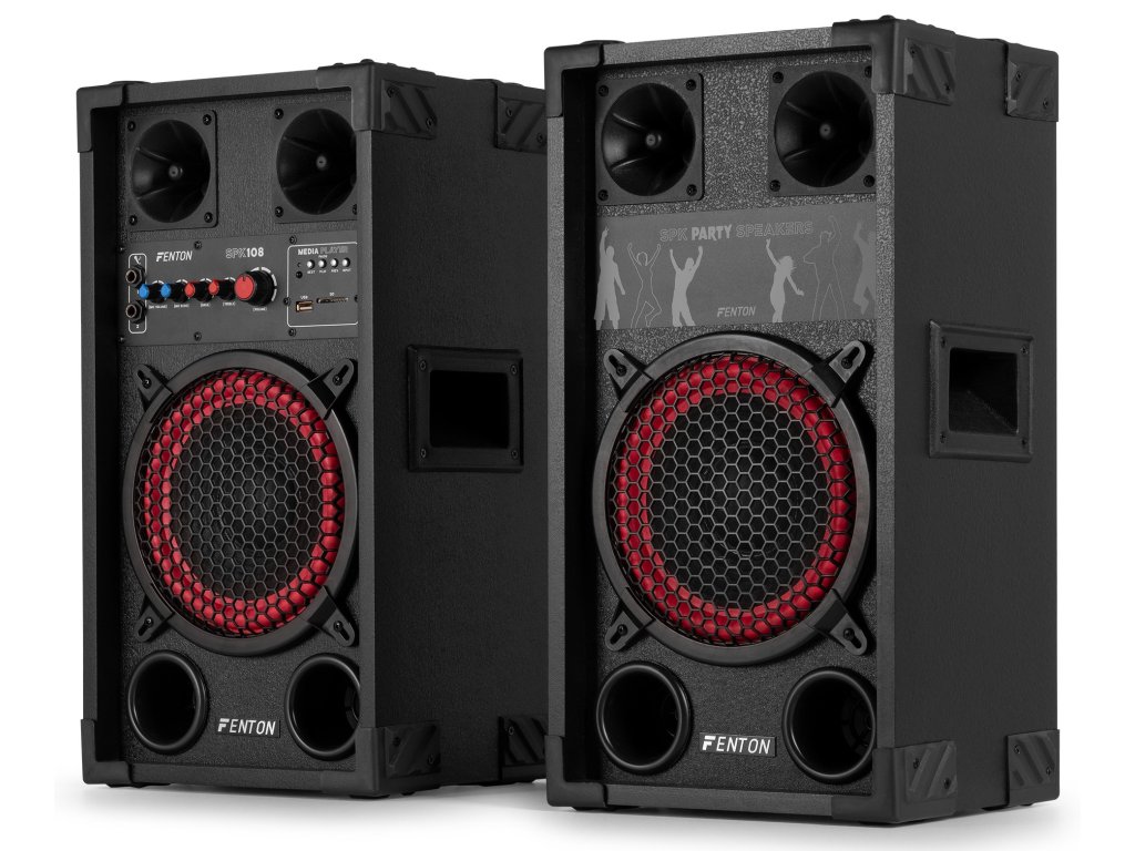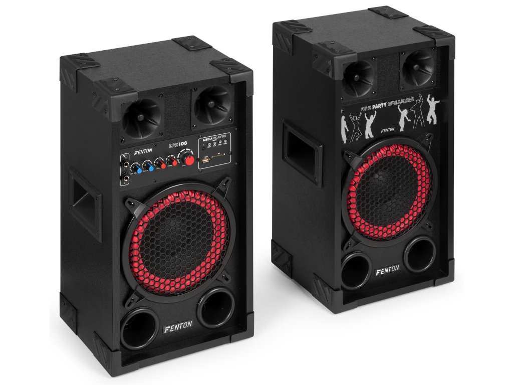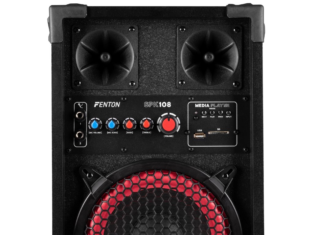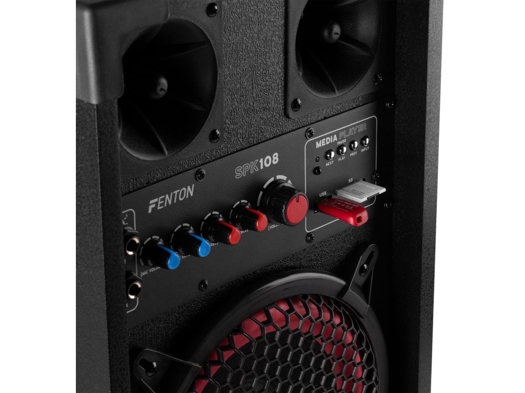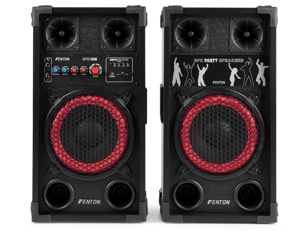 Aktívne reproduktorové zostavy Fenton SPK sú navrhnuté pre výkonný zvuk a jednoduché použitie. Vďaka pripojeniu Bluetooth, vstavanému MP3 prehrávaču (USB/SD) a dvom mikrofónnym vstupom s echo efektom sú tieto reproduktory ideálne pre večierky, karaoke a akcie. Nastaviteľné ovládanie basov a výšok zaisťuje optimálny zvukový zážitok, zatiaľ čo robustná konštrukcia a prenosnosť robí radu SPK vhodnou pre akékoľvek priestory. Nechajte sa prekvapiť čistým a dynamickým zvukom Fenton a posuňte svoj hudobný zážitok na vyššiu úroveň