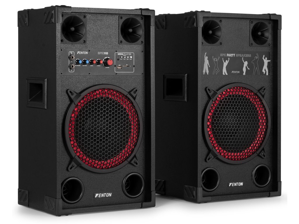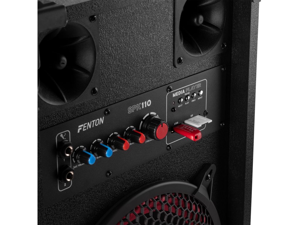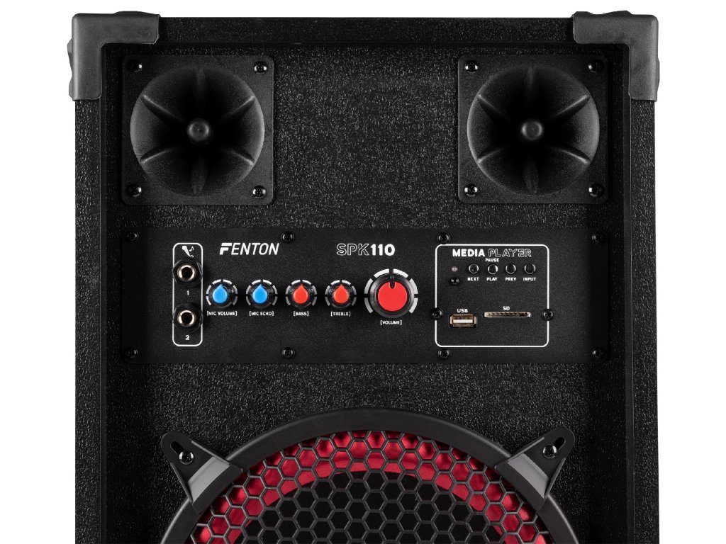 Aktívne reproduktorové zostavy Fenton SPK sú navrhnuté pre výkonný zvuk a jednoduché použitie. Vďaka pripojeniu Bluetooth, vstavanému MP3 prehrávaču (USB/SD) a dvom mikrofónnym vstupom s echo efektom sú tieto reproduktory ideálne pre večierky, karaoke a akcie. Nastaviteľné ovládanie basov a výšok zaisťuje optimálny zvukový zážitok, zatiaľ čo robustná konštrukcia a prenosnosť robí radu SPK vhodnou pre akékoľvek priestory. Nechajte sa prekvapiť čistým a dynamickým zvukom Fenton a posuňte svoj hudobný zážitok na vyššiu úroveň
