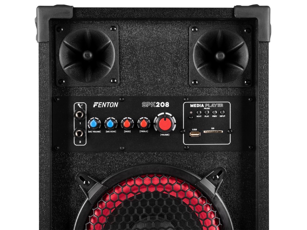 Aktívne reproduktorové zostavy Fenton SPK sú navrhnuté pre výkonný zvuk a jednoduché použitie. Vďaka pripojeniu Bluetooth, vstavanému MP3 prehrávaču (USB/SD) a dvom mikrofónnym vstupom s echo efektom sú tieto reproduktory ideálne pre večierky, karaoke a akcie. Nastaviteľné ovládanie basov a výšok zaisťuje optimálny zvukový zážitok, zatiaľ čo robustná konštrukcia a prenosnosť robí radu SPK vhodnou pre akékoľvek priestory. Nechajte sa prekvapiť čistým a dynamickým zvukom Fenton a posuňte svoj hudobný zážitok na vyššiu úroveň