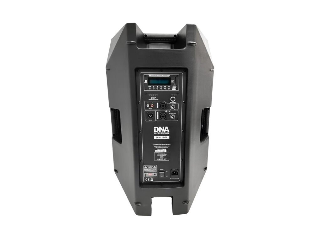 DNA SPX15 DSP je profesionálny dvojpásmový aktívny reprobox s výkonom 350 W (700 W peak), 15" wooferom, digitálnym DSP, podporou Bluetooth, portom USB, portom SD a vstavaným prehrávačom MP3, ako aj vstupom RCA, dvoma kombinovanými vstupmi MIC/LINE a výstupom MIX OUT. Je ideálny na použitie ako predný reproduktor alebo pódiový odposluch na koncertoch, rôznych vystúpeniach a prezentáciách a vďaka svojej nízkej hmotnosti aj ako ozvučenie pre mobilných DJ's, kapely alebo eventové spoločnosti.
