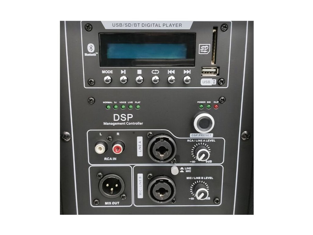 Reprobox DNA SPX15 DSP je riadený digitálnym zvukovým procesorom, ktorý umožňuje vybrať si z 5 nastavení vylepšenia zvuku. Na výber sú režimy Normal, DJ, Voice, Live a Flat. Všetky parametre sa zobrazujú na prehľadnom LCD paneli. Reproduktor má tiež port USB a SD a vstavaný audio prehrávač, takže môžete prehrávať hudbu z externých médií. Ďalšou výhodou je podpora Bluetooth, vďaka ktorej je možné do reproduktora posielať signál priamo z vášho inteligentného telefónu, tabletu, notebooku, počítača alebo iného zariadenia podporujúceho tento štandard bezdrôtovej komunikácie.